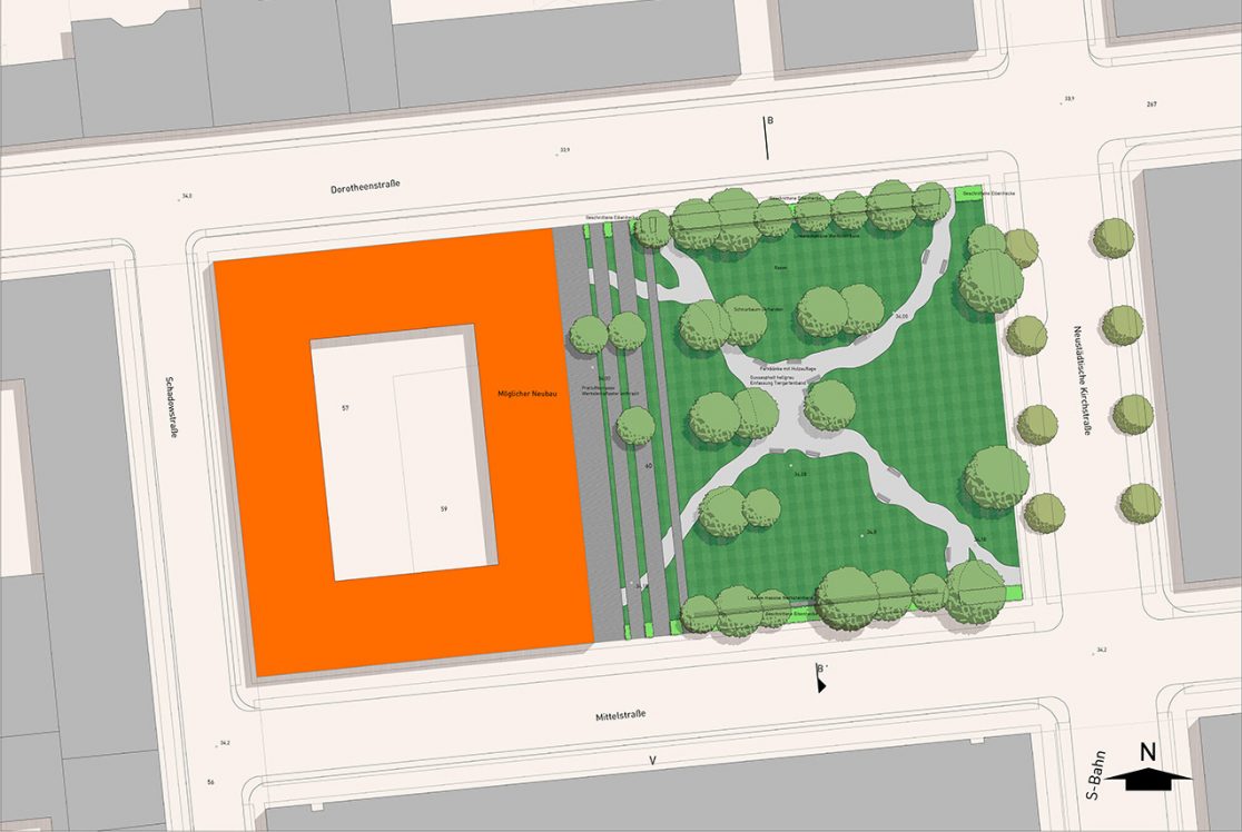Im Rahmen der Entwicklungsmaßnahme „Hauptstadt Berlin – Parlaments-und Regierungsviertel“ sollte nach dem Umzug der Botschaft der Vereinigten Staaten von Amerika zum Pariser Platz der ‚Neustädtische Kirchplatz’ im historischen Zentrum als Stadtplatz neu gestaltet werden.